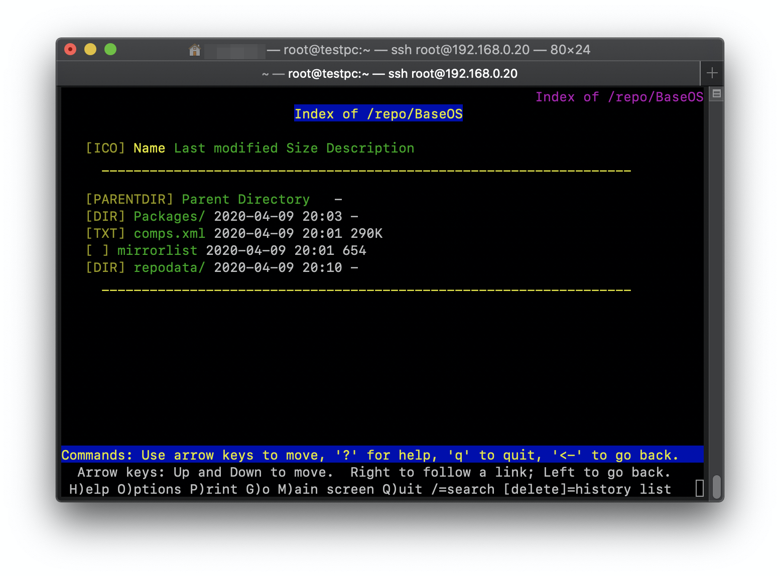 [root@testpc ~]# lynx http://192.168.0.19/repo/BaseOS