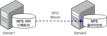NFS(Network File System)는 물리적으로 떨어져 있는 파일 시스템에 외부에서 원격으로 접근할 수 있도록 하는 네트워크 프로토콜이자 서비스입니다. 아래 그림과 같이 NFS 서버가 동작중인 장치의 디렉토리를 클라이언트에서 마운트 하여 사용할 수 있습니다.