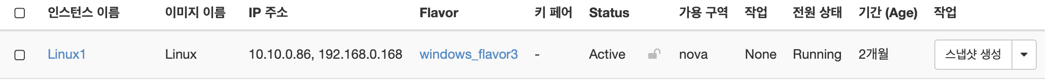 인스턴스에 Floating IP가 함께 표시되는 것을 볼 수 있습니다.