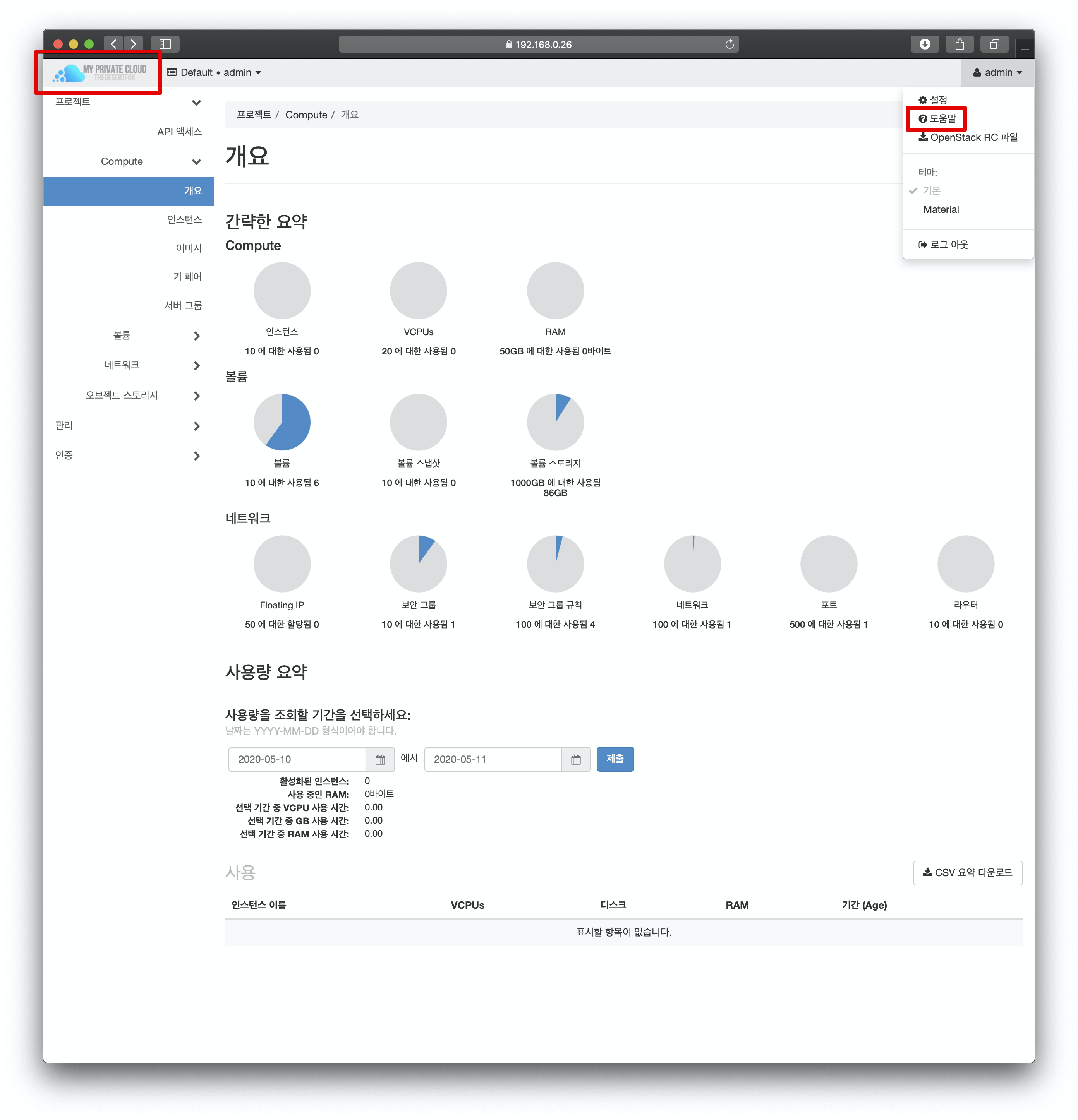 위와 같은 방법으로 로그인 후 오픈스택 메인 화면의 상단 로고도 변경해 보았습니다. 상단 로고는 같은 경로(.../img/)의 logo.svg입니다. 물론 백업하고 httpd 서비스를 재시작 해줍니다.