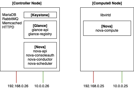 이번 포스트에서는 오픈스택의 핵심 기능이라고 볼 수 있는 Nova 컴퓨트 서비스를 구축하는 과정에 관하여 다루도록 하겠습니다. Nova 서비스에 대한 기본 내용은 해당 포스트를 참고하시기 바랍니다. [바로가기]