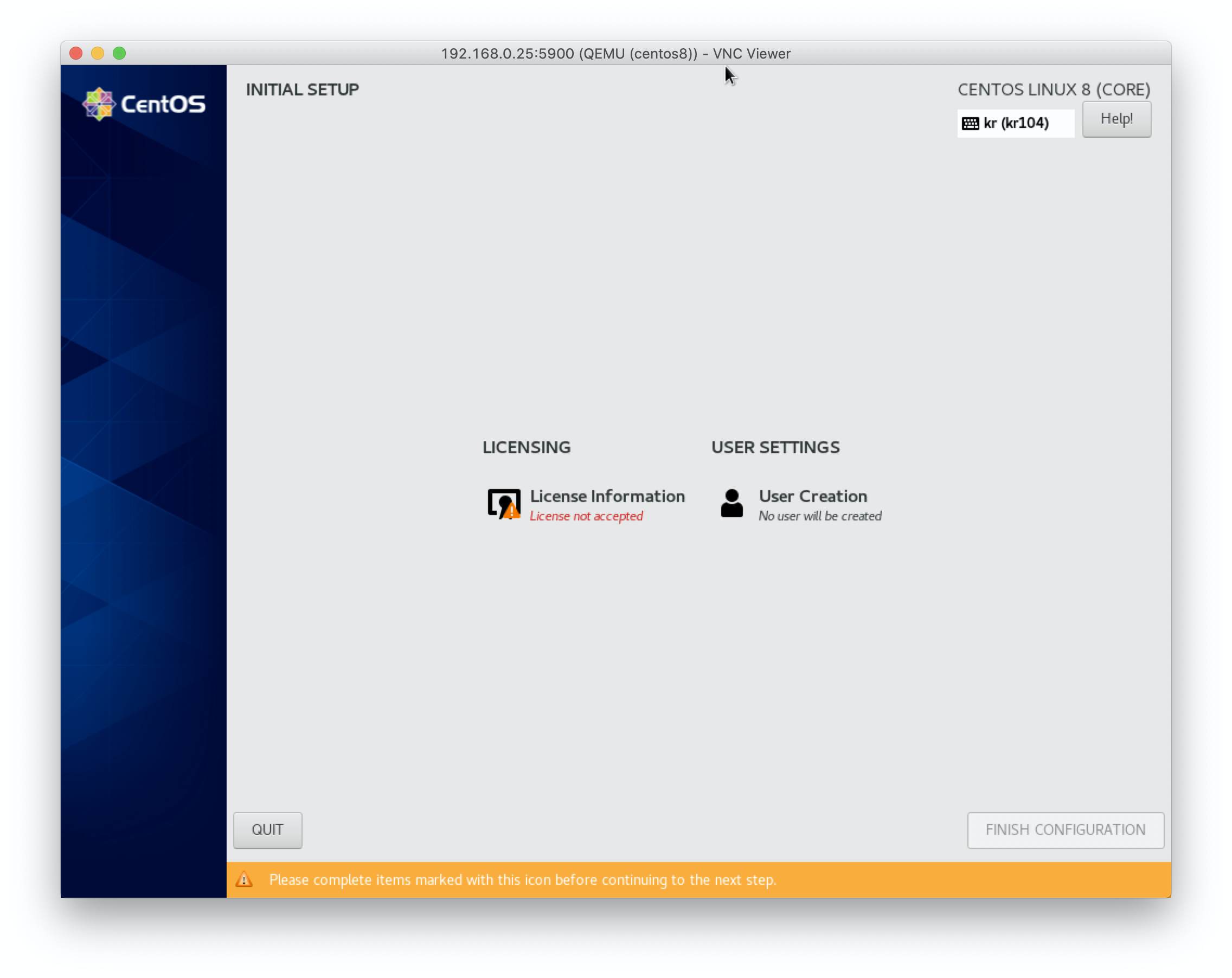 OS 설치가 완료 되면 다음과 같이 vnc 연결이 끊길 수 있습니다.