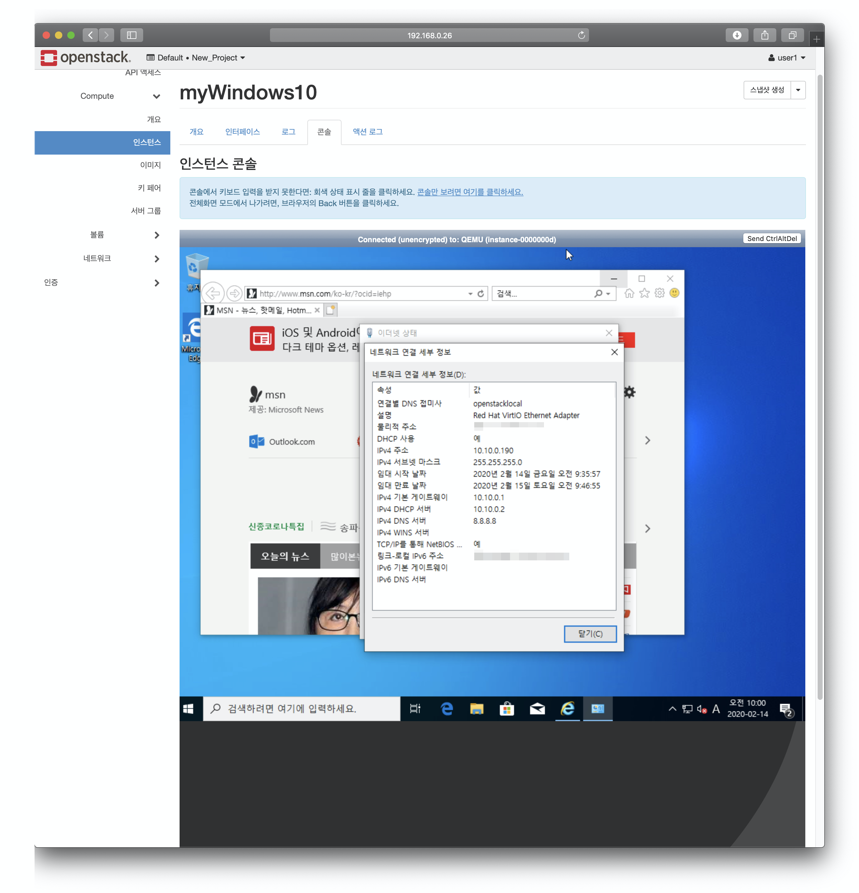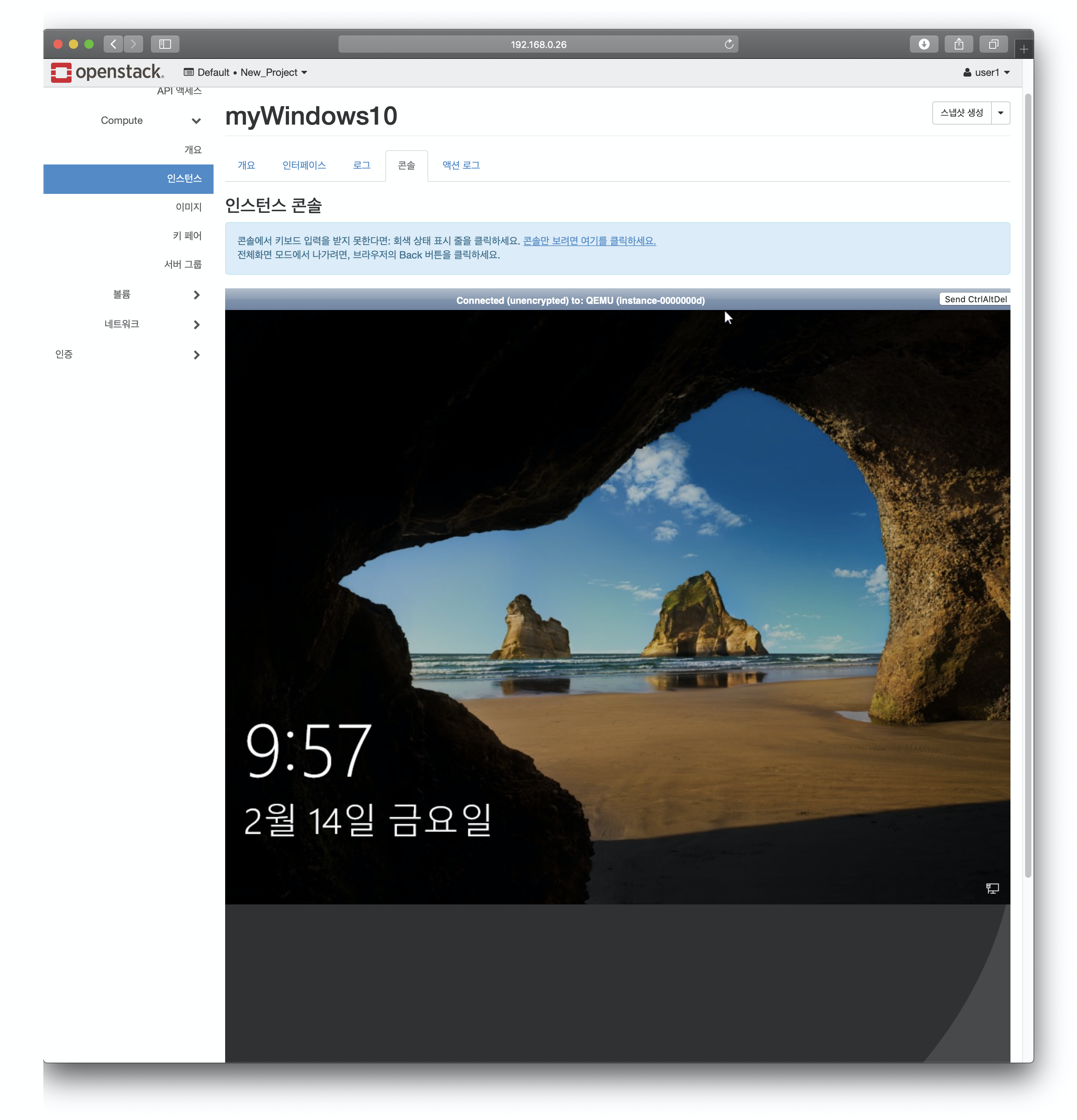 우선 오픈스택 대시보드에 로그인합니다.